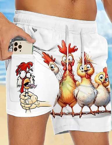 Pánské Zvíře kuřátko Legrační Podšívané šortky Plavecké šortky 2v1 Plavky pánské Středně vysoký pas Havajské Dovolená Oblečení na pláž Boční kapsy S kompresní vložkou Elastická šňůrka v pase Návrhář