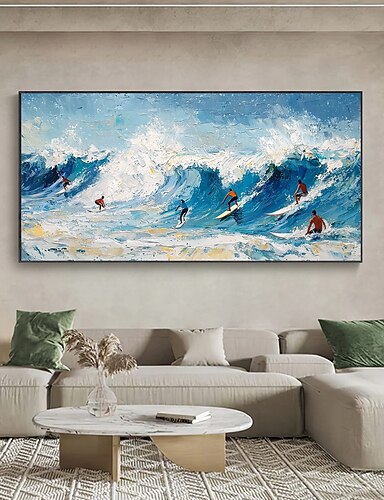 ručně vyráběný originální surfařský sport olejomalba na plátně abstraktní vlny oceánu nástěnné umění pro domácí dekoraci s nataženým rámem bez vnitřního rámu malba