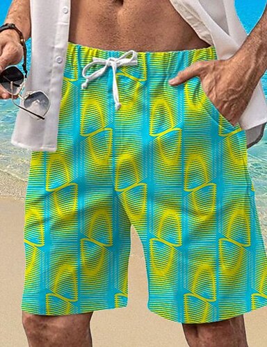 Pánské Geometrie Barva přechodu Plavecké trenýrky Plavky pánské Surfovací šortky Středně vysoký pas prázdniny Havajské Dovolená Dovolená Plážové Šňůrky s podšívkou ze síťoviny Elastický pas Návrhář
