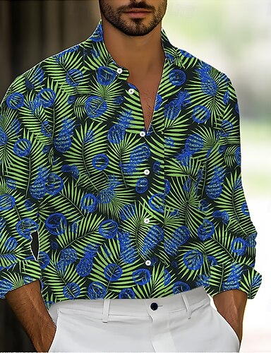 Pánské Košile Plážová košile S lístky Venkovní Dovolená Vodní modrá Dlouhý rukáv Stojáček Léto Jaro Oblečení Tisk