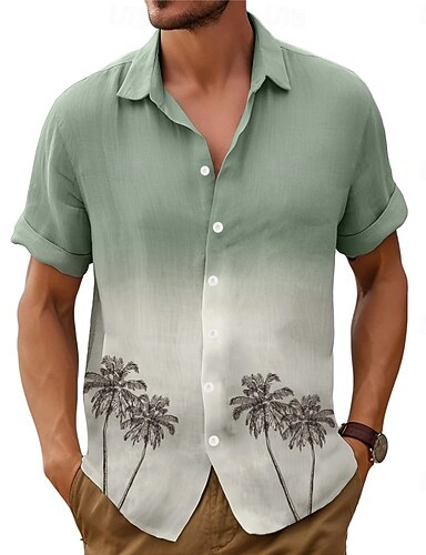 Pánské Košile plátěná košile Plážová košile Havajská košile Kokosový strom Dovolená Denní nošení Světlá růžová Vodní modrá Khaki Krátké rukávy Přehnutý Léto Oblečení