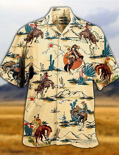 Kentucky Derby Pánské Kovbojské Košile Havajská košile Aloha košile Krátký rukáv Košile Přehnutý Vinobraní Havajské Designové Venkovní ulice Ležérní Bílá Žlutá Světlá růžová 3D tisk S M L