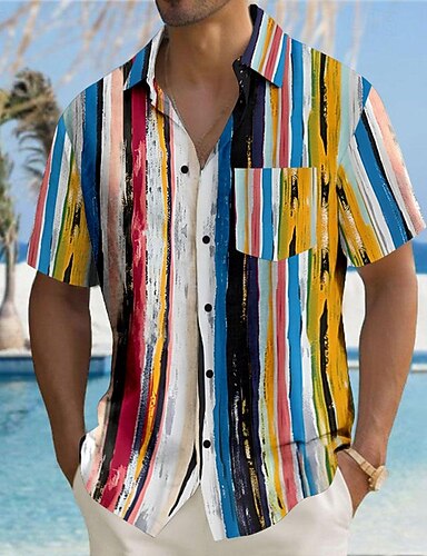 Pánské Proužky Geometriské vzory Košile na knoflíky Trička s potiskem Krátký rukáv Havajské Letovisko Venkovní Business, obřad, svatba Léto Přehnutý Tisk Tlačítko dolů Černá Fialová Duhová