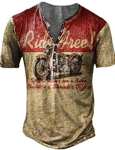 Pánské Tričko Tričko Henley Trička Grafika Motor Henley Modrá červená Rubínově červená Vodní modrá Fialová Trávová zelená 3D tisk Větší velikosti Venkovní Ležérní Krátký rukáv Tlačítko dolů Tisk
