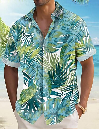 Pánské Plážová košile Košile na knoflíky Krátký rukáv Vinobraní Havajské Na běžné nošení Dovolená Denní Léto Jaro Přehnutý Košile s límečkem Tlačítko nahoru 3D tisk Vodní modrá Hnědá Trávová zelen