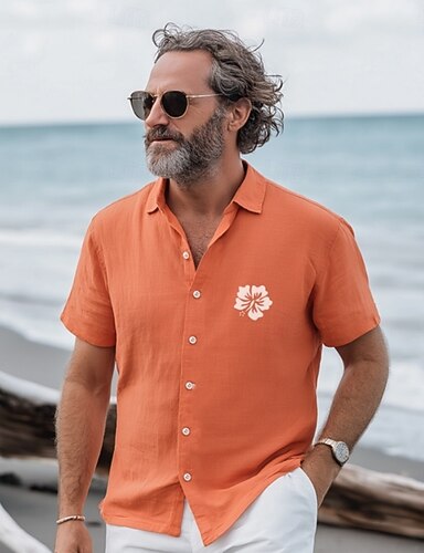 Pánské Květinový Košile pro volný čas Havajská košile Aloha košile Krátký rukáv Havajské Letovisko Dovolená Ležérní Léto Jaro Přehnutý Tlačítko nahoru Oranžová