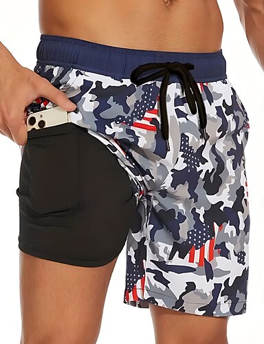 Pánské Kamuflážní barva Americká americká vlajka Podšívané šortky Plavecké šortky 2v1 Plavky pánské Středně vysoký pas Havajské Dovolená Oblečení na pláž Boční kapsy S kompresní vložkou Elastick