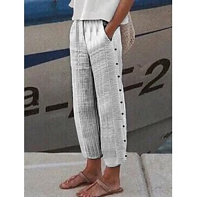 Dámské Bavlněné plátěné kalhoty Kalhoty Letní kalhoty Volné kalhoty Jednobarevné Klasické Po kotníky Středně vysoký pas Kapsy Vydutý Pružný design se stahovací šňůrkou Pohodlné Prodyšnost Yumuşak