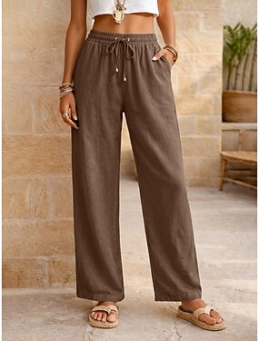 Dámské Plátěné kalhoty Kalhoty Kalhoty pro volný čas Letní kalhoty prázdniny Módní Základní Plná délka Středně vysoký pas Bez vzoru Šňůrky Elastický pas Straight-Leg Lehká váha Prodyšné Neelastické