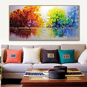 velká ručně malovaná stromová olejomalba na plátně ručně vyráběná barevná lesní podzimní malba do obývacího pokoje umění ručně malovaná těžká texturovaná impastová malba