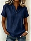 Dámské Tričko Polokošile Trička Vaflově pletené topy Bez vzoru Módní stylové Základní Krátký rukáv Košilový límec Běžné topy Denní Jdeme ven Víkend Vodní modrá Černá Bílá Oranžová Trávová zelená Léto