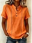 Dámské Wafflová košile Pevná barva Elegantní Aktivní prázdniny Poloviční rukáv Do V Dlouhé topy Denní Venkovní Streetwear Černá Bílá Rubínově červená Nebeská modř Oranžová Léto Jaro Podzim