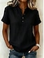 Dámská blůza ze 100% bavlny jednobarevná elegantní volnočasová s krátkým rukávem ve tvaru V každodenní prázdninové s knoflíky černá modrá fialová zelená béžová léto jaro