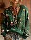 Dámské Neformální bunda Denní nošení Léto Jaro Podzim Maxi Kabát Běžný Prodyšné Umělecké a retro Na běžné nošení Saka Dlouhý rukáv Květinový Výšivka Černá Trávová zelená