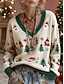Dámské Svetr Rolák Vinobraní Módní Šik ven Vánoční stromek Rýhovaný Do V Velkoformátové Pletený Tisk Dlouhý rukáv Běžné topy Plést Venkovní Denní Bílá Jaro Podzim