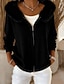 Dámské Svetr Elegantní Na běžné nošení Měkké Čistá barva Rýhovaný Kapuce Zip Pletený Dlouhý rukáv Běžné topy Plést Venkovní Denní Víkend Černá Bílá Podzim Zima