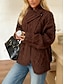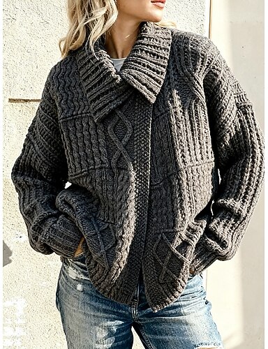 dámský svetr kardigan svetr bunda košile límeček kabel pletený šněrovací knoflík kapsa jaro podzim domů denně víkend vintage denně ležérní ležérní dlouhý rukáv čistá barva velbloud