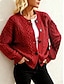 Dámské Kardigan Na běžné nošení Měkké Pevná barva Kabel Košilový límec Kapsy Pletený Dlouhý rukáv Dlouhé topy Plést Denní Jdeme ven Víkend Černá Rubínově červená Podzim