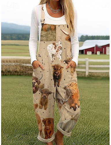 Dámské Montérky Aktivní Zvíře Bez rukávů Bez rukávů Široké nohavice Kapsy Knoflíky Dovolená ulice Volný Bílá Vodní modrá Trávová zelená Léto