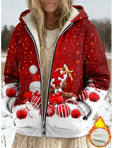 Dámské Zimní kabát Fleecová bunda Neformální bunda Zahřívací Zip Kapsy Tisk Módní Na běžné nošení Vánoce ulice Ležérní Standardní Kapuce Běžný Dlouhý rukáv Svrchní oděvy Rubínově červená Vodní modr