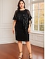 Pouzdrové Šaty pro matku nevěsty Malé černé šaty Větší velikosti Zářivé Tričkový Ke kolenům Šifón Flitry Poloviční rukáv s Flitry