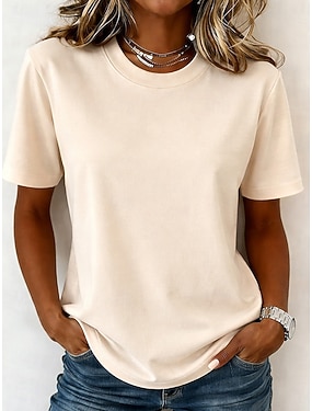 Dámské Tričko Bavlněná košile Tričko Top Pevná barva Módní stylové Základní Krátký rukáv Tričkový Běžné topy Denní Jdeme ven Víkend Vodní modrá Černá Bílá Žlutá Světle zelená Léto Jaro