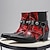 Pánské červené gotické kotníkové boty s cvočky – punk rockové kožené boty s přezkou a bočním zipem na koncerty, festivaly a párty