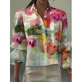 Dámské Halenka Tisk Batikované Květiny Čechy Denní Dlouhý rukáv Do V Běžné topy Denní Dovolená Vodní modrá Světlá růžová Fialová Fuchsiová Meruňková Léto Jaro Podzim