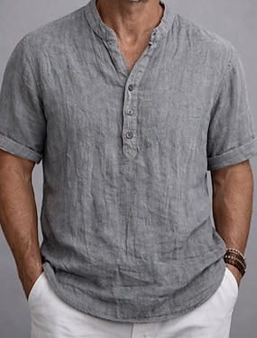 Pánské Košile Lněná košile Popover košile Letní košile Oblečení na pláž Tričko Henley Bez vzoru Ležérní Dovolená Bílá Khaki Šedá Krátký rukáv Henley Léto Jaro Oblečení