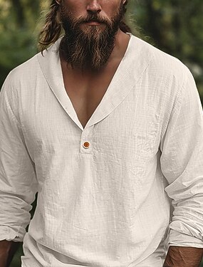 Pánské Košile Lněná košile Vikingský styl Letní košile Oblečení na pláž Bez vzoru Dovolená ulice Trávová zelená Béžová Dlouhý rukáv Do V Léto Jaro Oblečení
