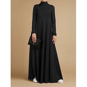 Dámské Dlouhé šaty Maxi šaty Černé šaty Volnočasové šaty Zimní šaty Koktejlky Módní Základní Klasické Denní Venkovní Dovolená Volný Dlouhý rukáv Stojáček Vodní modrá Černá Světlá růžová Hnědá Podzim