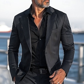 Pánské Sako Formální Venkovní Ležérní S podšívkou Klasické & nadčasové Elegantní & moderní Celý rok Polyester Směs bavlny Vertikální pásky Moderní styl Jednořadové sako s jedním knoflíkem Blejzr Černá