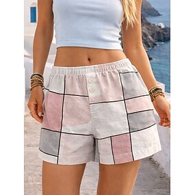 Dámské Imitace bavlny a lnu Kalhoty chinos Kraťasy Kalhoty pro volný čas prázdniny Na běžné nošení Krátký Vysoký pas Grafika Pléd S přezkou Tisk Pohodlné Yumuşak Venkovní Lehce elastické Ležérn