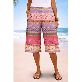 Dámské Kalhoty chinos Kraťasy prázdniny Vinobraní Etnický styl Krátký Vysoký pas Květinový Grafika Plisé Lehce elastické Denní Venkovní Dovolená Fialová Tiffany tyrkysová Růžová Trávová zelená Léto