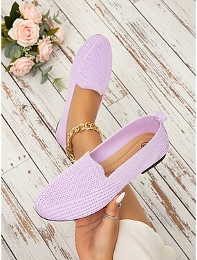 Dámské fialové měkké pletené nazouvací boty – minimalistické, prodyšné a lehké do kanceláře, na dojíždění, na cestování i na běžné nošení