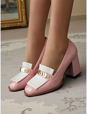 Dámské Denní Práce Párty Přezky Blokovat patu Oblá špička Elegantní Vinobraní Umělá kůže Spona Černá Bílá Růžová