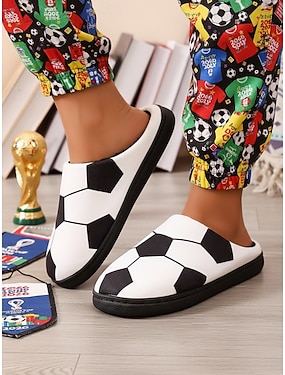 Dámské černé pantofle s potiskem fotbalového míče – měkké pohodlné vnitřní boty s polstrovanou podrážkou pro domácí, ložnicové i sportovní fanoušky