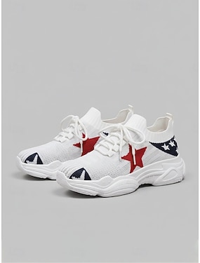 Dámské pletené tenisky s vlasteneckým vzorem – prodyšné a lehké šněrovací boty na chůzi s potiskem hvězd, ležérní atletický styl na Den nezávislosti, přehlídky, cestování &denní nošení