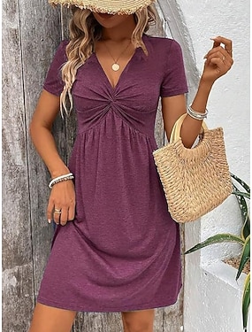 Dámské Šaty ke kolenům Volnočasové šaty Áčkové šaty Elegantní Módní Moderní Venkovní Dovolená Jdeme ven Běžný Bez vzoru Krátký rukáv Do V Vodní modrá Černá Fialová Trávová zelená Léto Jaro