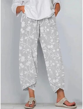 Dámské Kalhoty chinos Kalhoty Aktivní Běžné Denní Dlouhé Vysoký pas Květinový Kapsy Elastický pas Potisk Prodyšnost Yumuşak Lehce elastické Dovolená ulice Denní nošení Modrá Fialová Trávová zelen