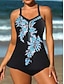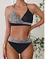 Dámské Plavky Tankini 2 ks Odvážné Plavky Zaštíhlující Vysoký pas Štíhlý Volná záda prázdniny Oblečení na pláž Leopard Krk ohlávky Bez rukávů Plavky