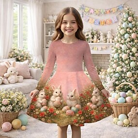 Velikonoce Girls ' 3D Grafika Králíček Šaty Dlouhý rukáv 3D tisk Jaro Podzim Denní Dovolená Párty Na běžné nošení Princeznovské Krásná Děti 4-12 let Volnočasové šaty Áčkové šaty Délka ke kolenům Běžný