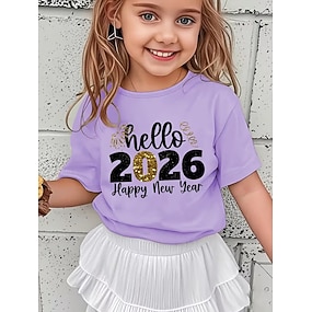 Dívčí tričko s 3D potiskem a písmeny na Silvestra 2026, krátký rukáv, 3D tisk, léto, jaro, sportovní, módní, streetwear, děti 4-12 let, kulatý výstřih, outdoor, ležérní, denní, standardní střih