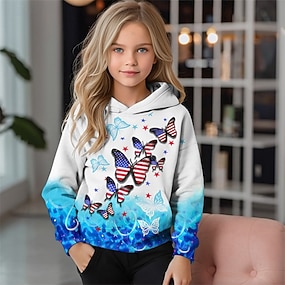 Americký den nezávislosti Dívčí 3D Vlajka Kapuce Dlouhý rukáv Jaro Podzim Módní Šik ven Děti 4-12 let Kapuce Venkovní Ležérní Denní Běžný