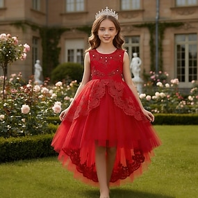 Šaty pro květinovou družičku Dívčí Formální šaty Svatební Oblečení Párty Svatební Vánoce Módní Rozkošný Princeznovské Slátanina Síťka Květinový Vánoce Bez rukávů Tričkový Rubínově červená Fialová 4