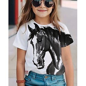Dívčí 3D Grafika Zvíře Kůň Tričko Košilky Krátký rukáv Léto Jaro Módní Základní Děti 4-12 let Tričkový Venkovní Ležérní Denní Běžný