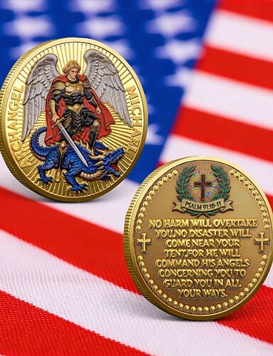 Pamětní mince archanděla Michaela, Žalm 91:10-11, inspirativní křesťanský sběratelský předmět, dárek duchovní ochrany, náboženská památka pro blízké.