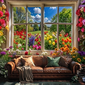 gobelín Bannery Deka Kytky Okenní 3D Ložnice Obývací pokoj Koleje Pokoj pro teenagery kolej na vysoké škole Veranda na zdi Bytové dekorace