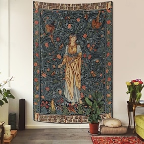 William Morris styl flóra služebnice země nástěnná tapiserie já jsem služebnice země já vyšívám spravedlivé její nádherné šaty viktoriánská bohyně umění nástěnná dekorace obývací pokoj ložnice bytové