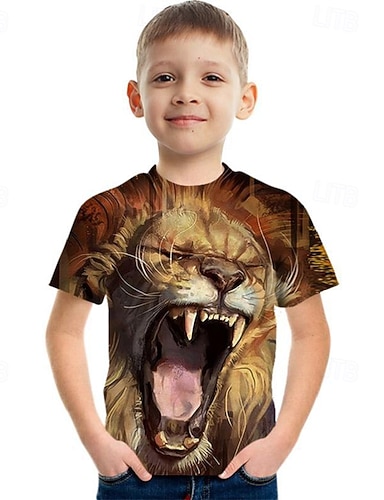 Chlapecké 3D Zvíře Lev Tričko Krátký rukáv 3D tisk Léto Jaro Aktivní Sportovní Módní Polyester Děti 3-12 let Venkovní Denní Běžný